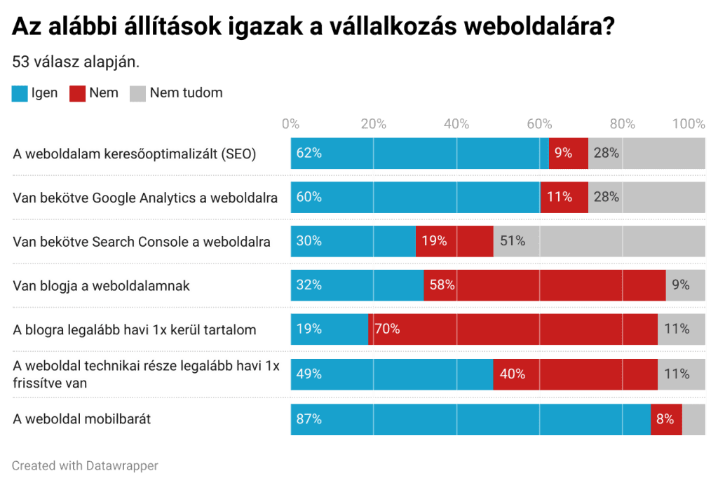 A 2024-es szlovákiai magyar marketingkutatás szerint a megkérdezett vállalkozások kétharmada rendelkezik weboldallal, és azok többségében mobilbarátak és keresőoptimalizáltak. Ugyanakkor már csak a weboldallal rendelkező vállalkozások fele frissíti a technikai részét, és még kevesebb tölt fel új tartalmat.