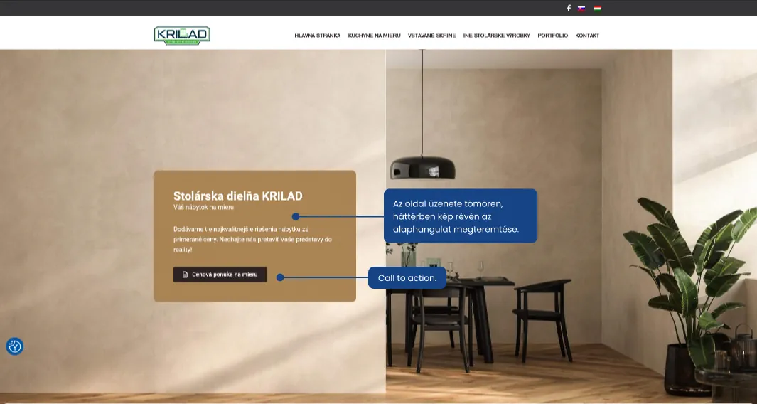 Az ügyfelünk egy asztalosműhely tulajdonosa, akinek terméke minősége magáért beszél. Ugyanakkor a weboldal régebbi verziója ezt az értéket nem tudta egy az egyben úgy átadni a látogatónak, hogy azok felvegyék a kapcsolatot az asztalosműhellyel.